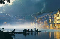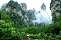 天門山國(guó)家森林公園四面絕壁,雄偉壯麗。保存著完整的原始次生林,植物資源豐富,有世界罕見(jiàn)的高山珙桐群落。天門山文化底蘊(yùn)深厚,留有大量贊詠天門山的詩(shī)詞,更有眾多神聞傳說(shuō),被譽(yù)為“張家界之魂”。山頂天門山寺自唐朝建成以來(lái)香火鼎盛,寺外有七級(jí)浮屠,掩映于青枝綠葉中,古雅幽清。善男信女入寺拜佛,撞鐘響徹天際,擊鼓震動(dòng)山岳,香煙裊裊如云。明萬(wàn)歷年間南岳僧在此傳經(jīng)授戒,從此聞名遐邇,朝山拜佛者達(dá)周邊四郡十余縣,信士遍及湘西北,天門山因此成為 “湘西第一神山”。天門山終年云霧繚繞,云海景象變化無(wú)窮。山間溶丘、石芽廣布,奇石秀木及珍禽異獸繁多,更有飛瀑流泉噴涌而出。天門山兼峰、石、泉、溪、云、林于一體,集雄、奇、秀、險(xiǎn)、幽于一身,被譽(yù)為空中原始花園。天門洞、天縫渡仙、五指山、將軍石等是有名的峰林景觀,還有神秘的千佛洞等待你的探奇;山間的韓家溝則是富蘊(yùn)滿族風(fēng)情的村落——這里久居的幾十戶滿族農(nóng)家至今仍完好保留著其在語(yǔ)言、飲食、衣著、居住以及婚慶殯葬等方面的滿族風(fēng)俗,是難得的民俗文化旅游地。