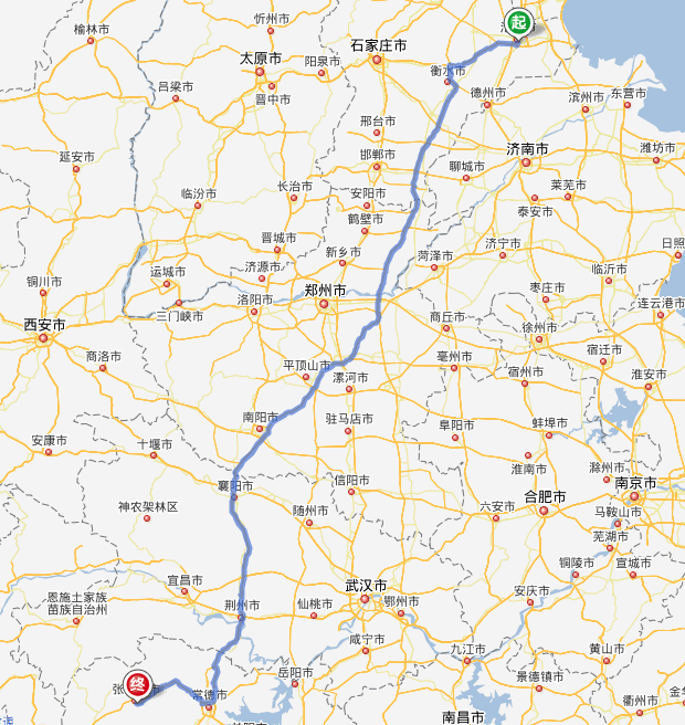 滄州去張家界自駕車(chē)線路圖全程高速):