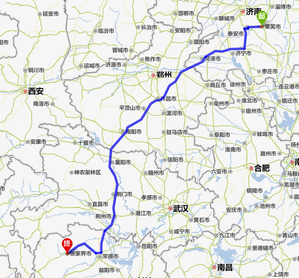 萊蕪去張家界自駕車自助游線路圖全程高速):