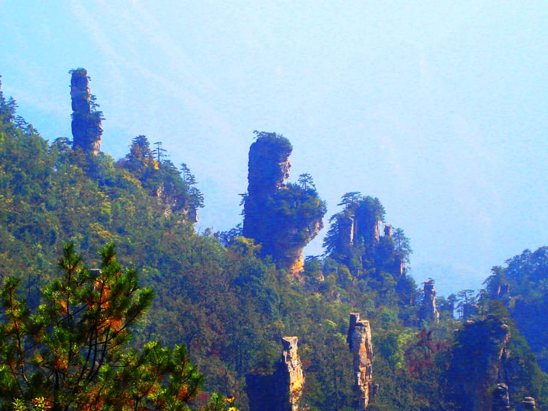 天門山十大景點(diǎn):虹索龍翔、曲道通天、天門洞開、云夢(mèng)躡巔、凌霄暢遠(yuǎn)、懸梯浮嵐、木石奇緣、玄壁隱仙、丹 灶飛煙、天界佛國